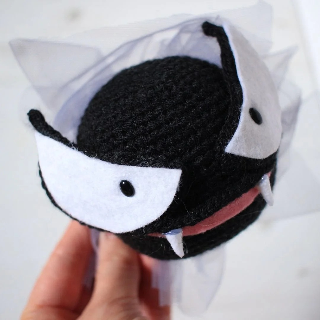 I started making a Gastly at some point in 2024 thinking it would be a super quick make because it uses the same head as so many of my other patterns (Spheal, Electrode & Voltorb, Pixar Ball, Qwilfish...) But then for some reason I just got so obsessed with how to create the eyes that it just took a lot longer than it needed to. I knew I wanted to use white felt for the eyes, but I needed something sturdy holding that in place, so I decided to crochet the backing. Initially I created a circle and folded in half in order to hide the back of the safety eye. It was very just too bulky. I pinned it all together but lost interest very quickly. It collected dust for months…